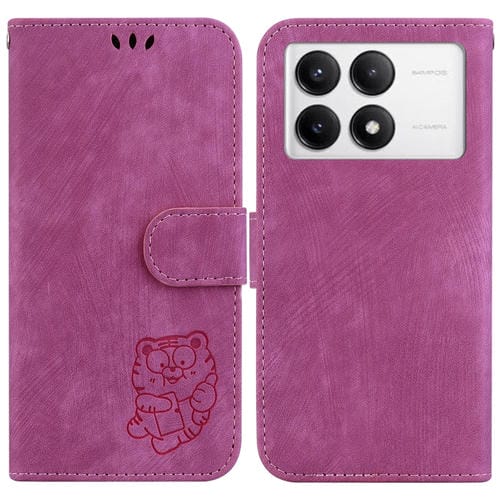 Para Xiaomi Poco F6 Pro Little Tiger Funda de Cuero para Teléfono En Relieve (Rojo Rosa)