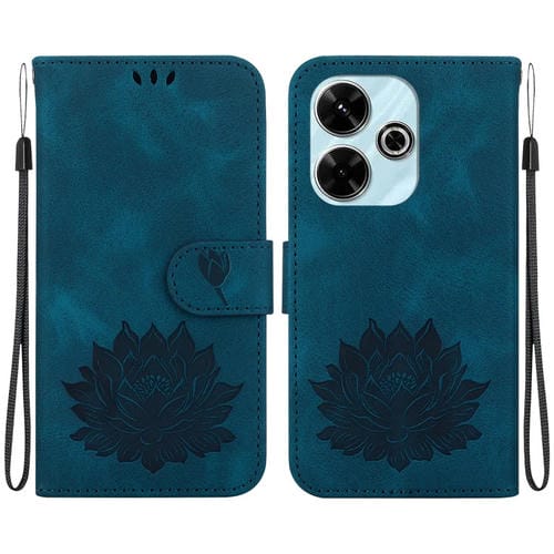 Para Xiaomi Poco M6 4G Lotus Funda de Cuero En Relieve para Teléfono (Azul Oscuro)