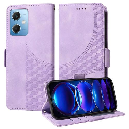 Para Xiaomi Poco X5 Funda para Teléfono de Cuero Estrellado con Rombos En Relieve (Púrpura)
