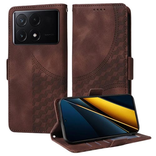 Para Xiaomi Poco X6 Pro Funda de Teléfono de Cuero Estrellado con Rombos En Relieve (Marrón)