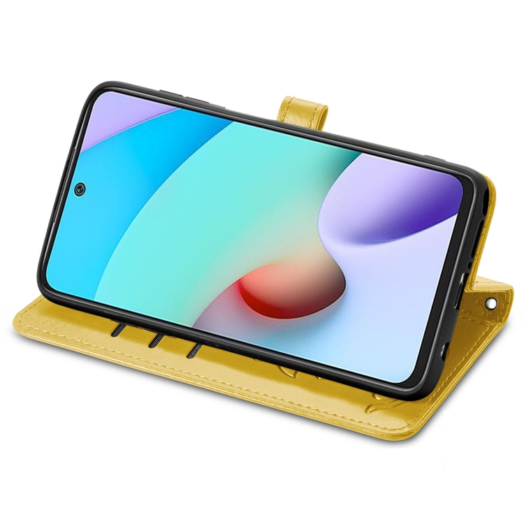 Para Xiaomi Redmi 10 Encantador Patrón de Gato y Perro Estuche de Cuero Horizontal Flip Funda, con Solter & Tarjetas Slots & Wallet & Cartoon Clasp & Lanyard (Amarillo)