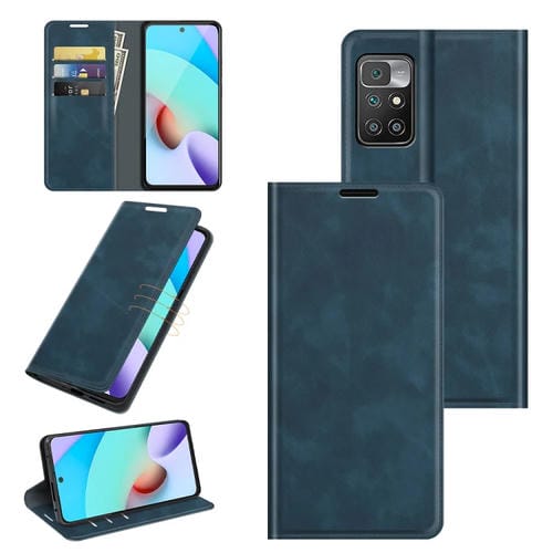 Para Xiaomi Redmi 10 Funda de Cuero de Succión Magnética de Negocios Retro-Piel con Soporte y Ranuras para Tarjetas y Billetera (Azul Oscuro)