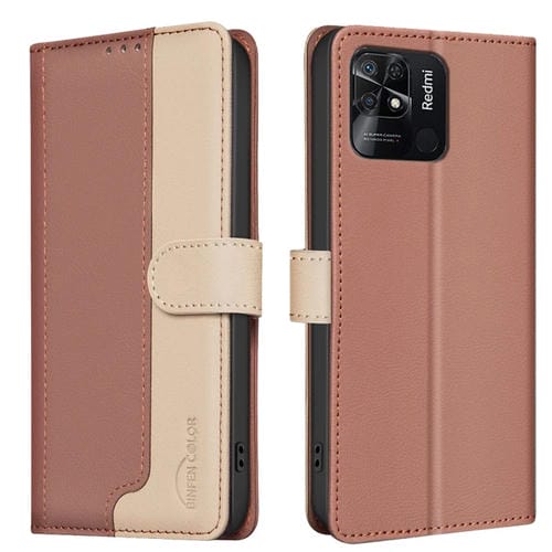 Para Xiaomi Redmi 10C Funda de Teléfono de Cuero Antirrobo Rfid a Juego de Colores (Marrón)