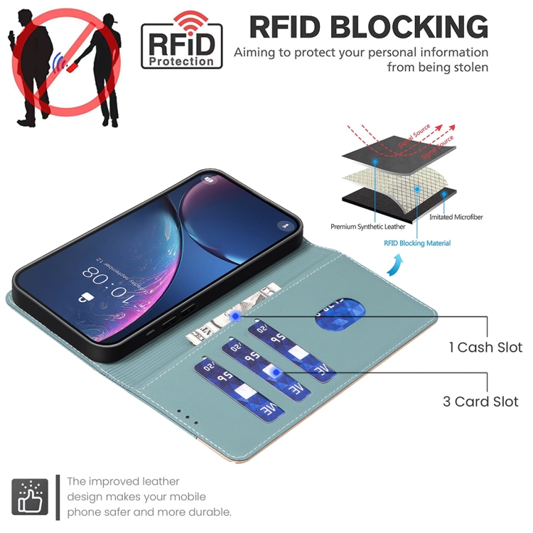 Para Xiaomi Redmi 12 4G Funda de Teléfono de Cuero Antirrobo Rfid a Juego de Colores (Verde)