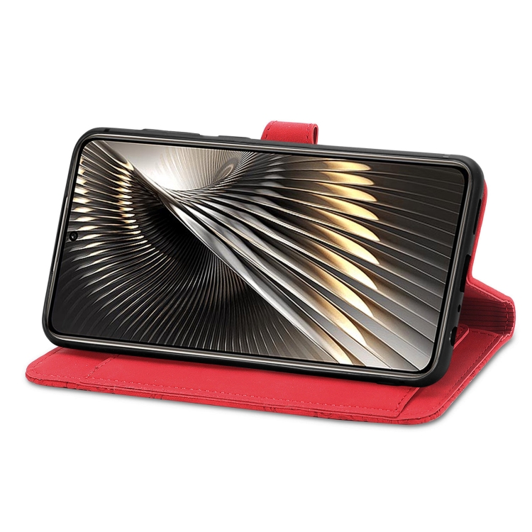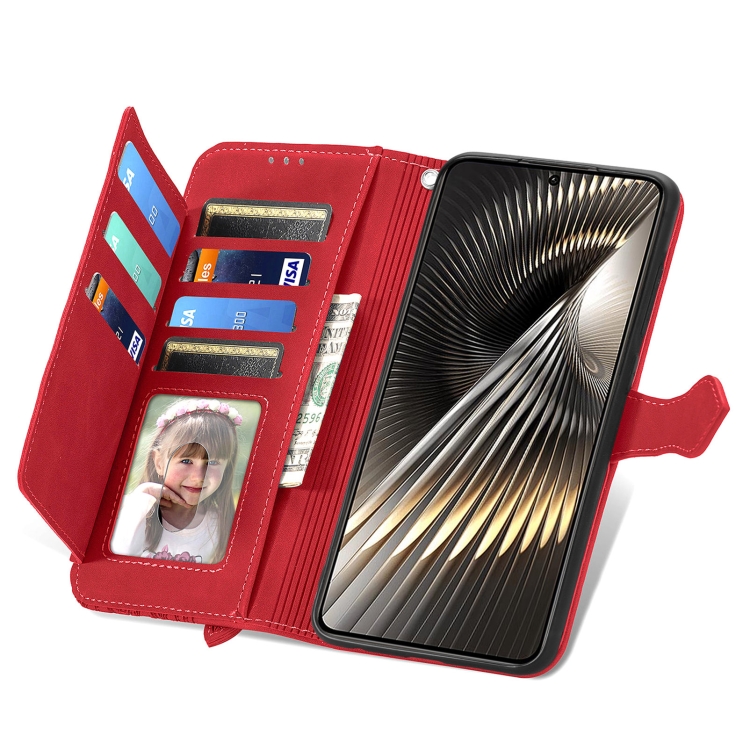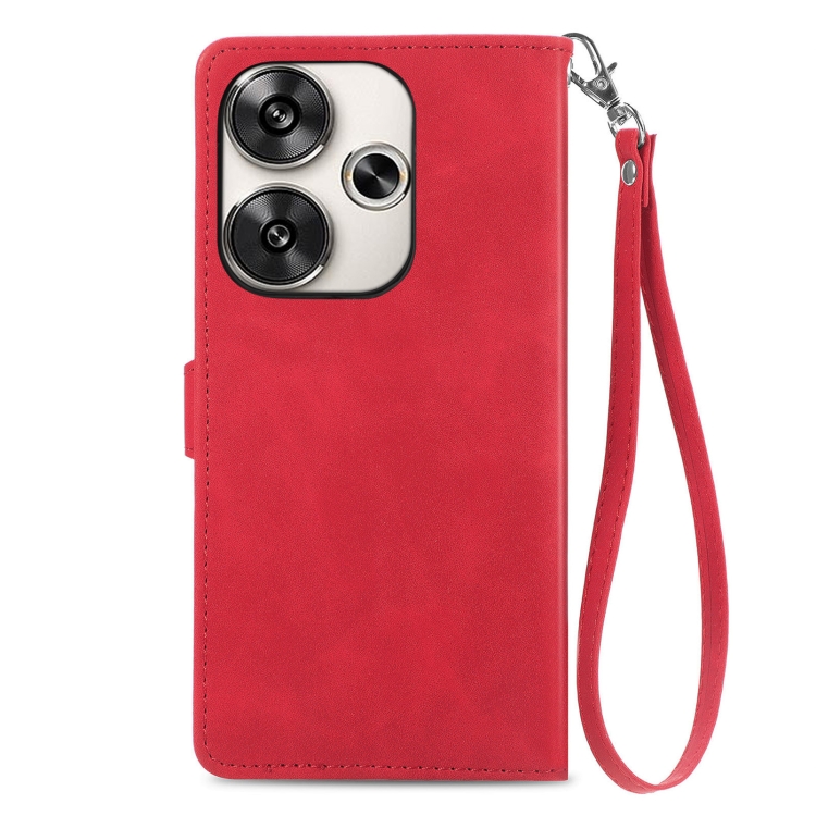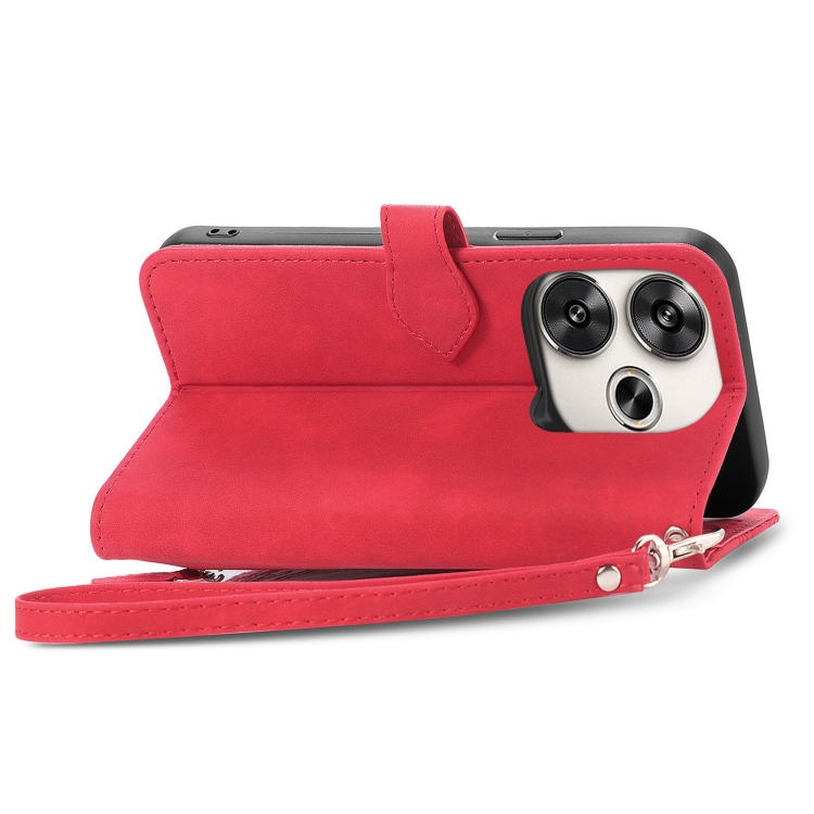 Para Xiaomi Redmi 13 4G Funda de Cuero con Cremallera y Flores En Relieve (Rojo)