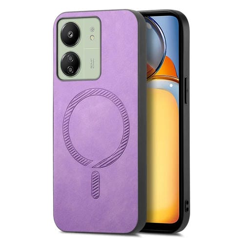Para Xiaomi Redmi 13C Color Sólido Retro Magsafe Pu Funda para Teléfono con Contraportada (Púrpura)