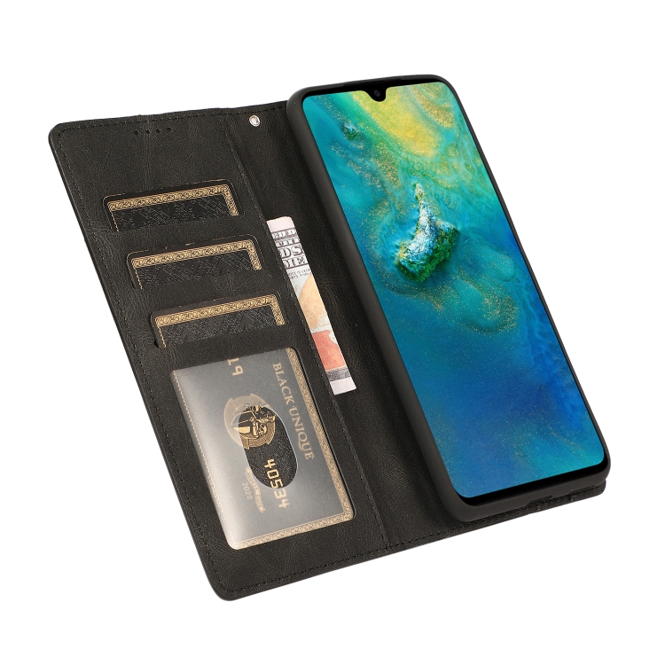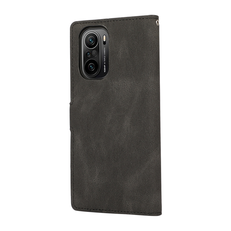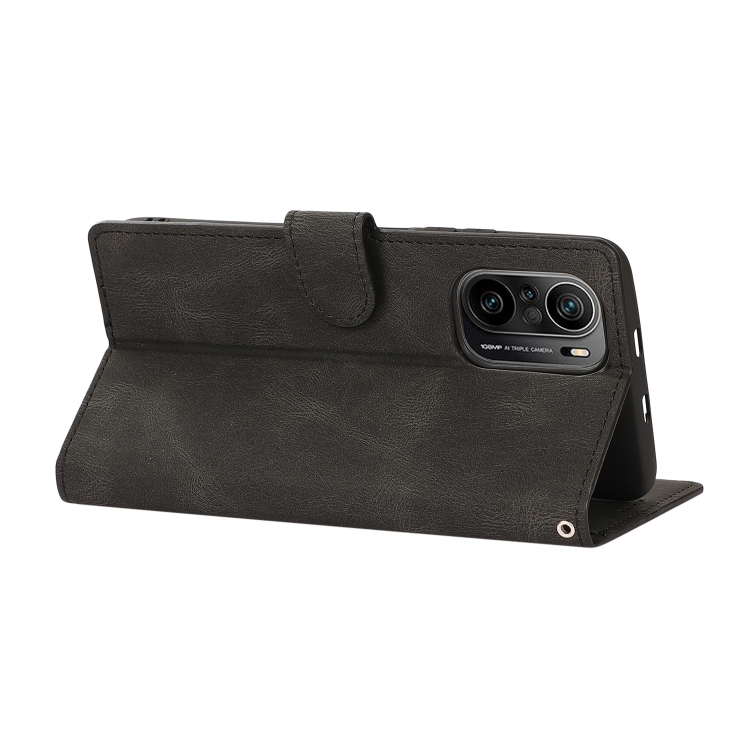 Para Xiaomi Redmi K40 Pro Fantasy Classic Piel-Siente de Piel de Becerro Textura Hebilla Magnética Horizontal Flip Pu Funda de Cuero con Soporte y Ranura para Tarjeta y Billetera (Negro)