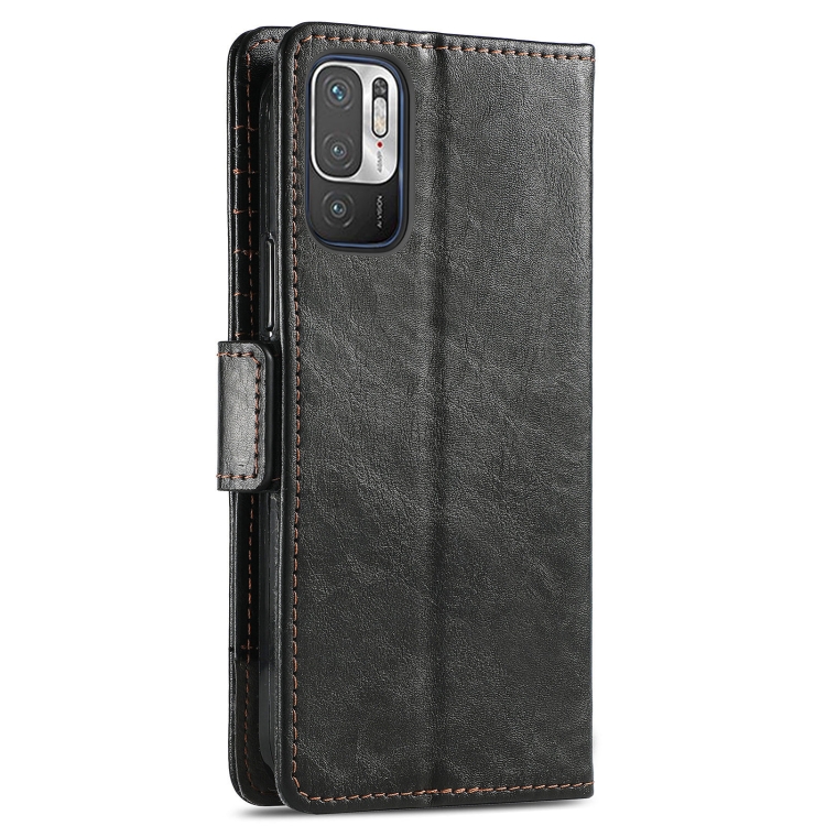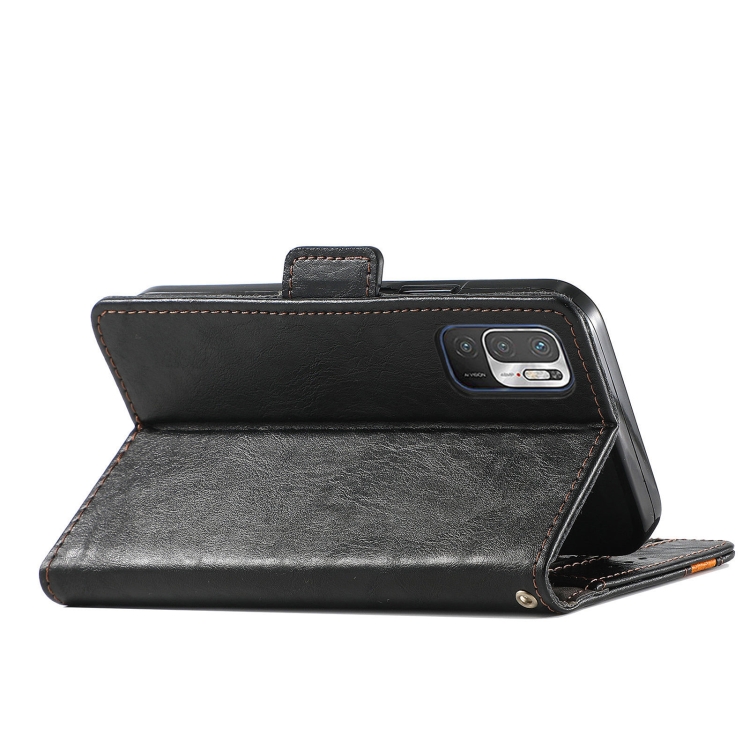 Para Xiaomi Redmi Note 10 5G Caseno Empalme de Negocios Dual Hebilla Magnética Horizontal Flip Pu Funda de Cuero con Soporte y Ranuras para Tarjetas (Negro)