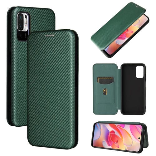 Para Xiaomi Redmi Note 10 5G Textura de Fibra de Carbono Magnética Horizontal Flip TPU + PC + Funda de Cuero Pu con Ranura para Tarjeta (Verde)