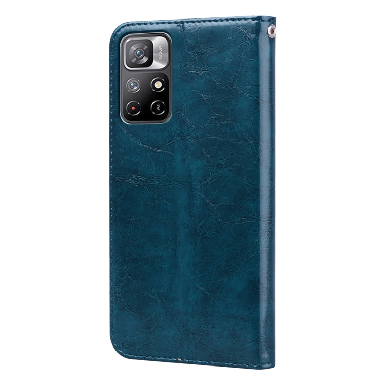 Para Xiaomi Redmi Note 11 5G Funda Telefónica de Cuero de Textura de Cera de Aceite (Azul)