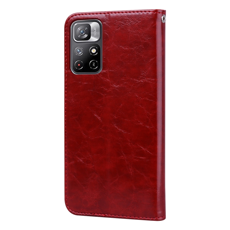 Para Xiaomi Redmi Note 11 5G Funda Telefónica de Cuero de Textura de Cera de Aceite (Rojo)
