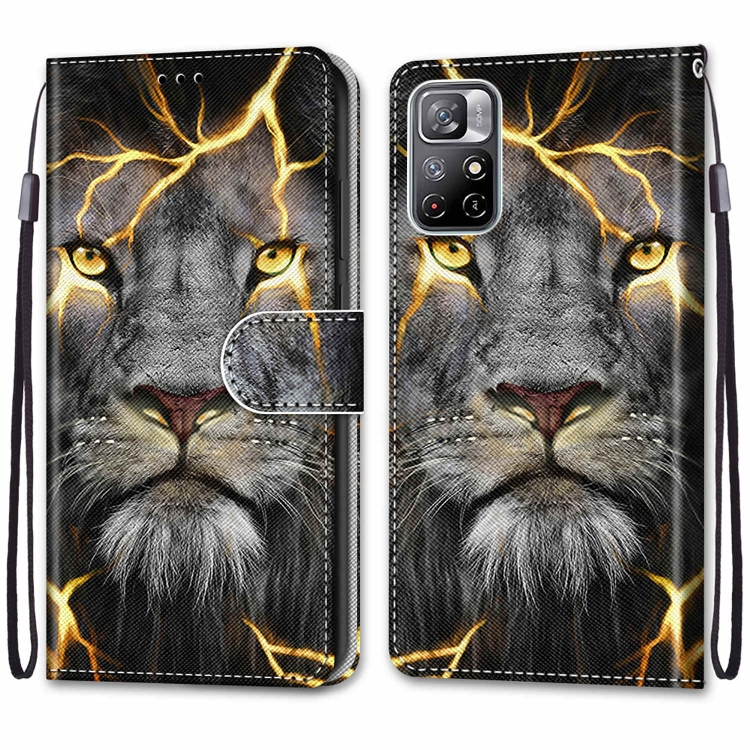 Para Xiaomi Redmi Note 11 Dibujo de Colores Textura Cristrada Crista Horizontal Flip de Cuero de Cuero de Cuero con Titular y Tarjetas Slots y Fillet & Lanyard (Lion Fission)