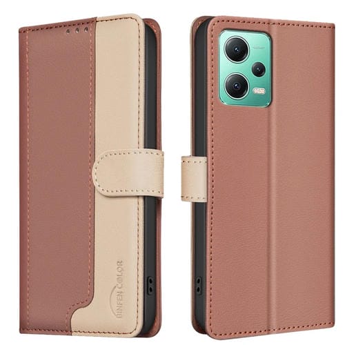 Para Xiaomi Redmi Note 12 5G Global / Poco X5 Funda para Teléfono de Cuero Antirrobo Rfid a Juego de Colores (Marrón)