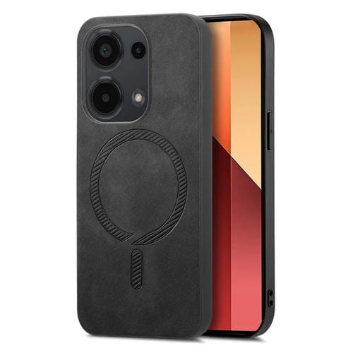 Para Xiaomi Redmi Note 13 4G Color Sólido Retro Magsafe Pu Funda para Teléfono con Contraportada (Negro)