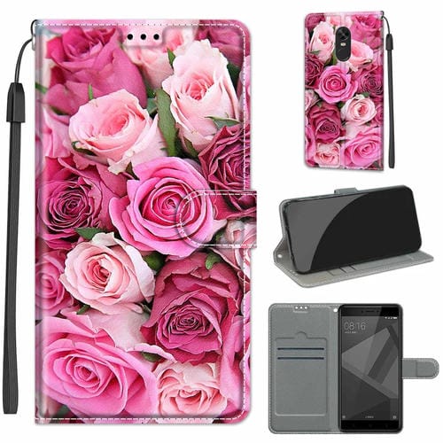 Para Xiaomi Redmi Note 4X Tensión de Color Dibujo de Color Magnético Cierre Magnético Flip Pu Funda de Cuero con Soporte y Ranuras para Tarjetas (C17 Hoja Verde Rosa Rosa)