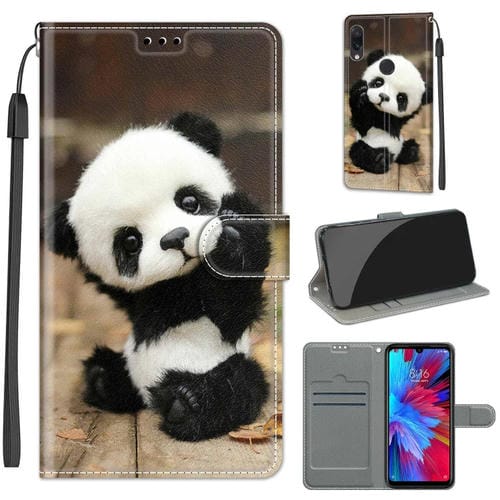 Para Xiaomi Redmi Note 7 Voltaje Dibujo de Color Magnético Cierre Magnético Flip Pu Funda de Cuero con Soporte y Ranuras de Tarjetas (C18 Placa de Madera Panda)