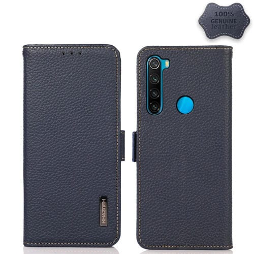Para Xiaomi Redmi Note 8 2021 Khazneh Funda Telefónica Rfid de Cuero Genuino de Lichi Magnético de Khazneh (Azul)
