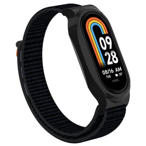 Funda de PC + Correa Nailon con Cierre Velcro para Xiaomi Smart Band 8/9 (Negro Oscuro)
