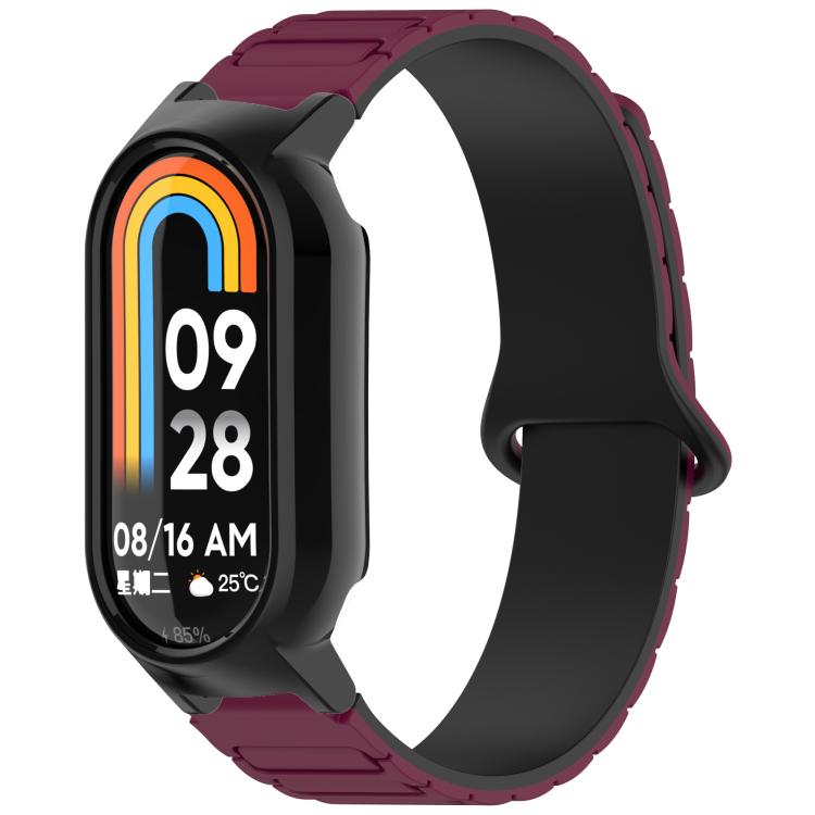Para Xiaomi Smart Band 9/9 NFC Watch Case Correa de reloj de silicona magnética en forma de I integrada (vino rojo negro + negro)