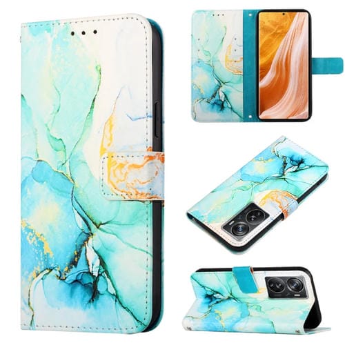 Estuche de Cuero para ZTE Axon 40 Pro Pt003 con Tapa de Patrón de Mármol (Verde)
