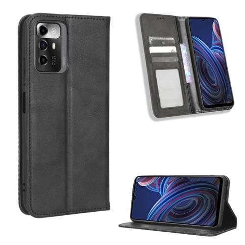 Funda de Cuero para ZTE Blade A72 5G con Hebilla Magnética y Textura Retro (Negro)