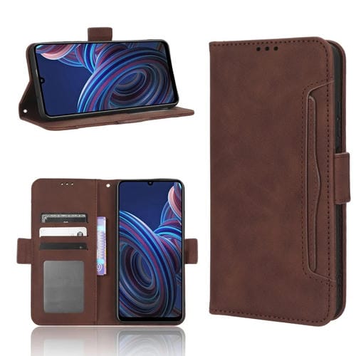 Funda de Cuero para ZTE Blade A72 5G con Ranuras para Tarjetas y Textura Becerro (Marrón)