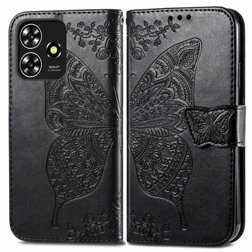 Funda de Cuero ZTE Blade A73 4G Butterfly Love Flower En Relieve (Negro)