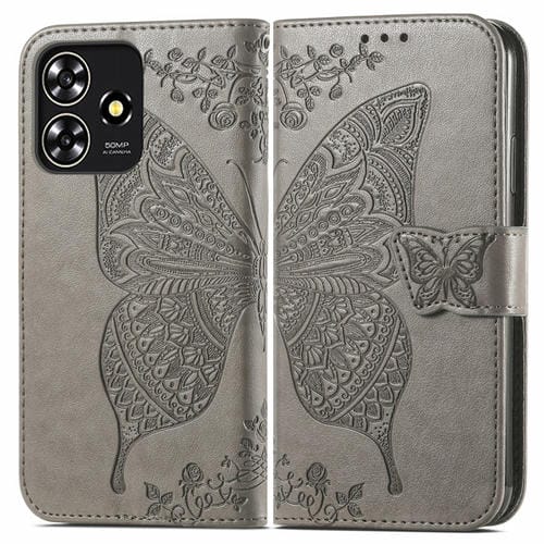 Funda para ZTE Blade A73 4G de Cuero con Relieve de Flor y Mariposa (Gris)