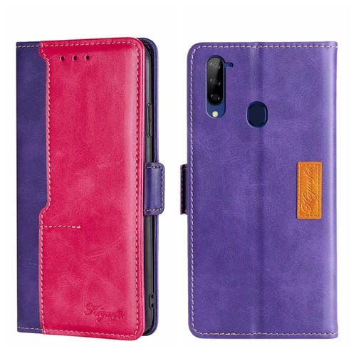 Funda para ZTE Libero 5G de Cuero con Hebilla Lateral y Contraste (Púrpura + Rosa Roja)