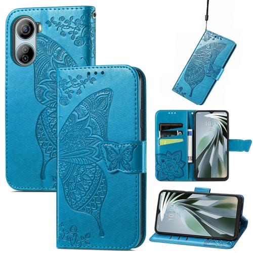 Funda para ZTE Libero 5G Iv de Cuero con Relieve de Flor y Mariposa (Azul)