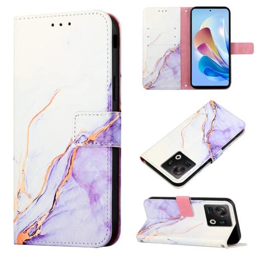Funda de Cuero con Tapa para ZTE Nubia Z40S Pro Pt003 Patrón de Mármol (Blanco Púrpura)