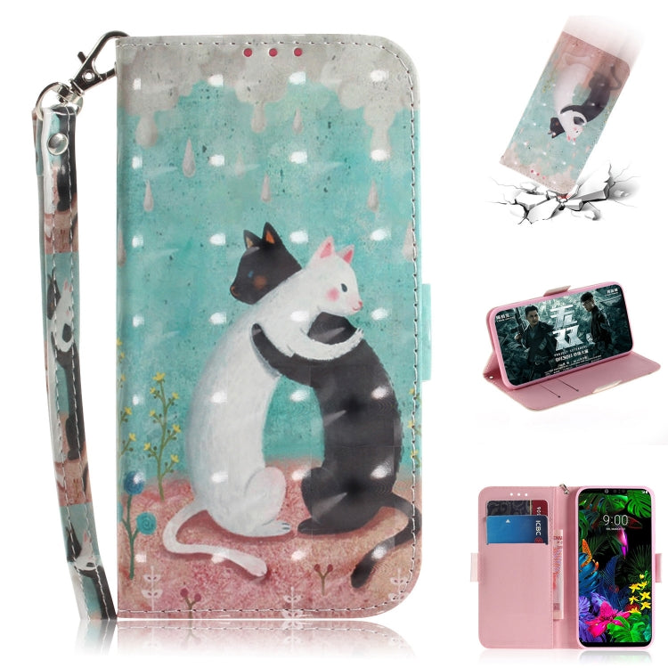 Funda de Cuero con Tapa Horizontal para LG G8 Thinq con Soporte, Ranuras para Tarjetas y Billetera (Gato Blanco y Negro)