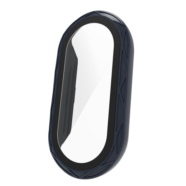 Película de vidrio templado con textura de nido de pájaro para Xiaomi Smart Band 9/9/8 NFC, funda de PC integrada (azul tinta)