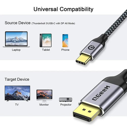 - 1x Cable Adaptador Qgeem QG-UA13 Tipo-C a DisplayPort 4K 60Hz Trenzado de Nylon 3M