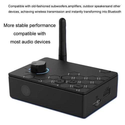 • Entrada de energía: 5V; interfaz de salida auxiliar de 3,5 mm; modos de operación: coaxial, fibra óptica, Disco USB, Bluetooth; control remoto con Batería de Botón; radio de trabajo efectivo de 15 m; soporta formatos WAV, FLAC, MP3, APE, MAV