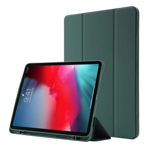 Funda Tablet Skin Feel Pen Holder Tri-Fold para iPad Pro 12.9 (2022/2021/2020/2018) (Verde Oscuro)
