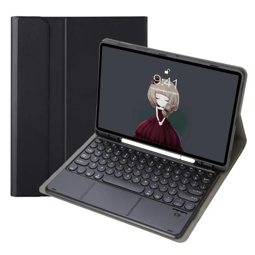 Funda teclado Bluetooth Ya098B-A con control táctil y ranura bolígrafo para iPad 9.7 pulgadas (2018) (Negro)
