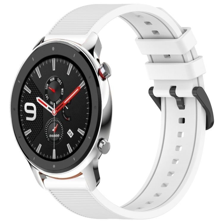Correa de Reloj Silicona para Amazfit GTR 42mm y GTS 20mm con Hebilla Plateada (Negro)