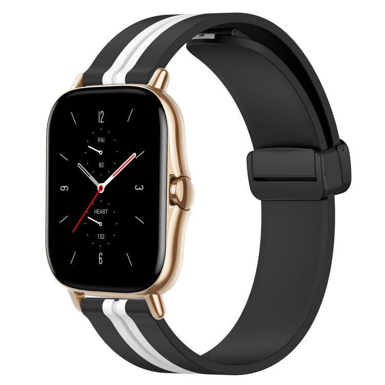 Pour bracelet de montre en silicone Amazfit GTS 2 20 mm avec fermoir magnétique pliant (noir + blanc)