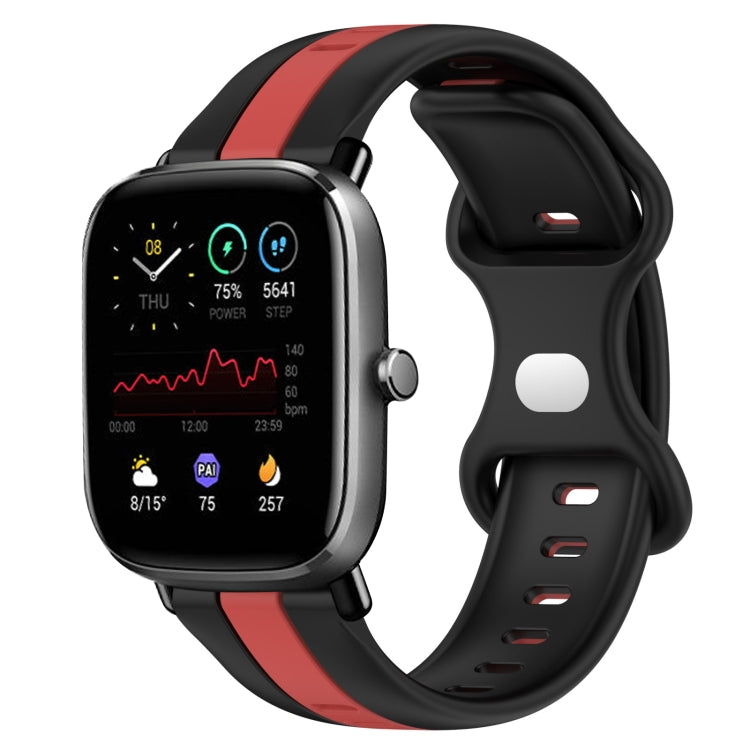 Correa de Silicona para Amazfit GTS 2 Mini 20mm con Hebilla de Mariposa (Negro + Rojo)