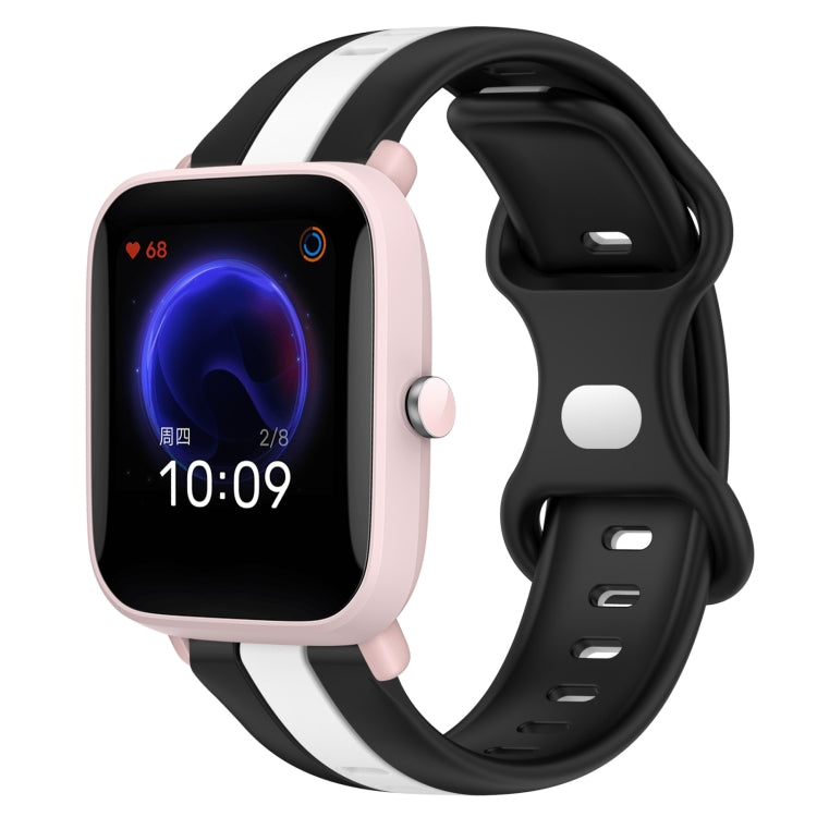 Correa para Reloj Amazfit Pop Pro 20mm silicona dos colores hebilla mariposa (Negro + Blanco)