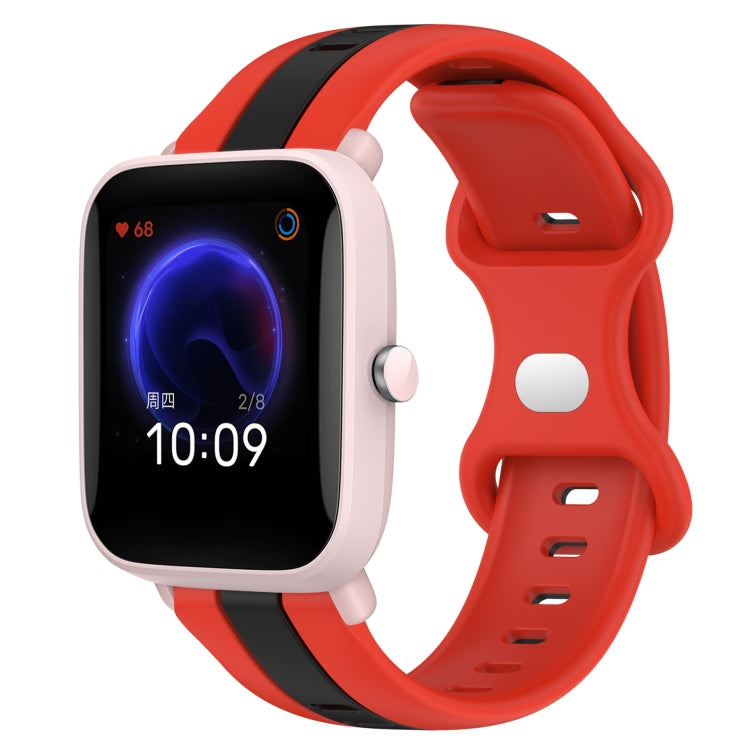 Correa de Reloj para Amazfit Pop Pro 20mm Hebilla de Mariposa Silicona Dos Colores (Rojo + Negro)