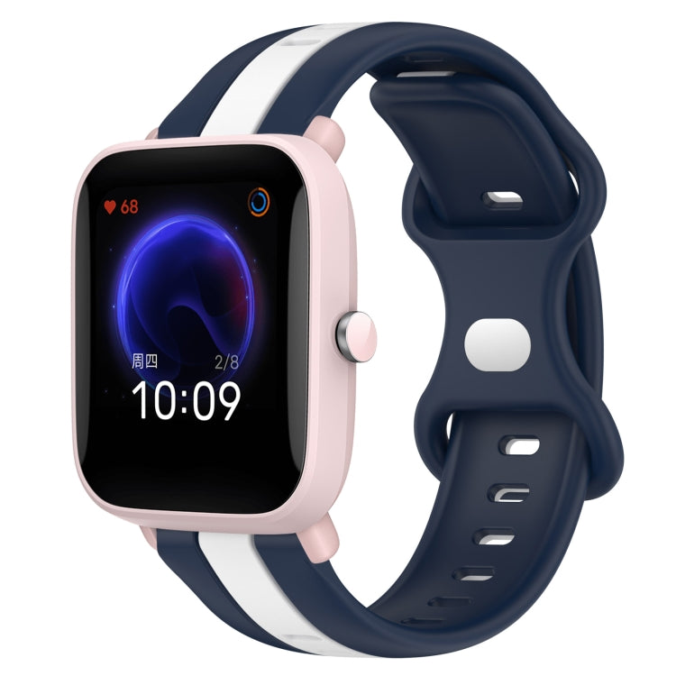 Correa de Reloj Amazfit Pop 20mm Hebilla de Mariposa Silicona Dos Colores (Blanco + Azul)