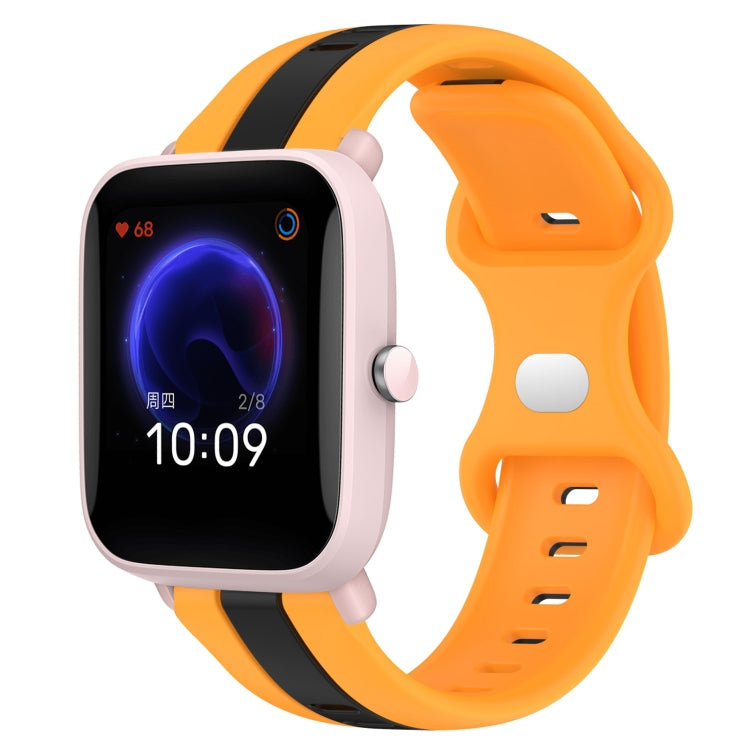 Correa de Reloj para Amazfit Pop 20mm Hebilla de Mariposa Silicona Dos Colores (Negro + Amarillo)