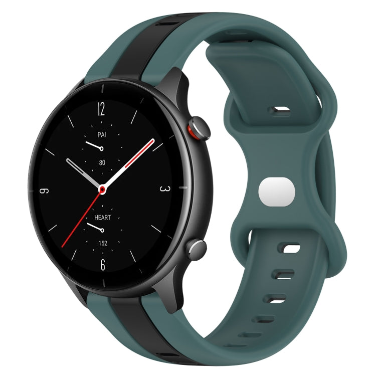 Correa de Reloj Amazfit GTS 3 20mm Silicona Dos Colores con Hebilla de Mariposa (Negro + Verde)
