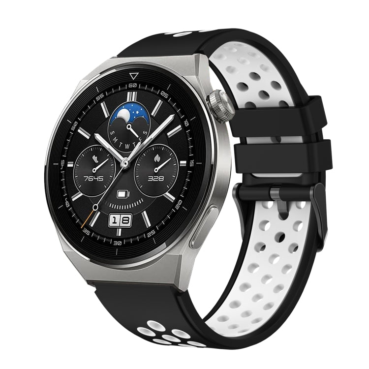 Correa de Silicona para Huawei Watch GT3 Pro 46mm con Orificio Redondo Dos Colores (Blanco Negro)