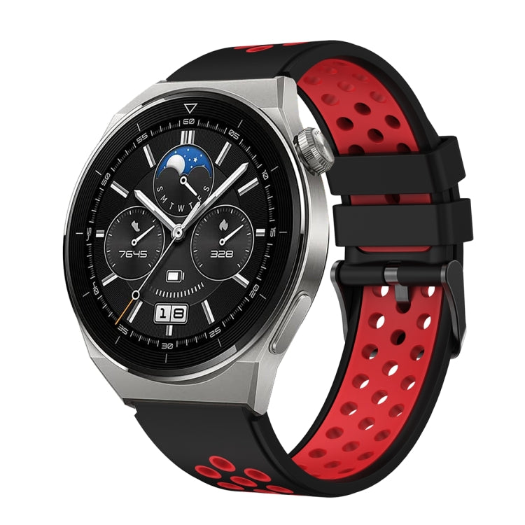 Correa de Silicona para Huawei Watch Gt3 Pro 46mm con Orificio Redondo Dos Colores (Negro Rojo)