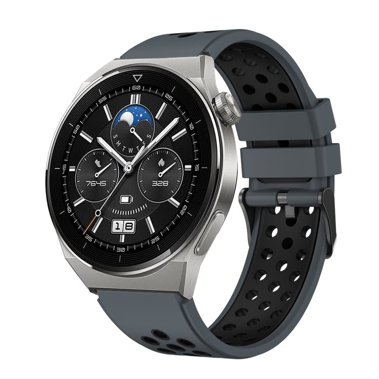 Correa de Silicona para Huawei Watch GT3 Pro 46mm con Orificio Redondo Dos Colores (Negro Gris)