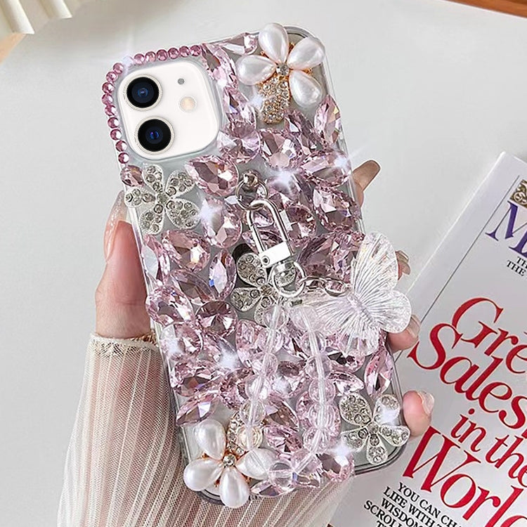 Funda para Teléfono iPhone 11 con Incrustaciones de Diamantes y Mariposas Hecha a Mano (Rosa)