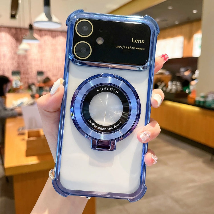 Funda para Teléfono iPhone 11 Magsafe Holder TPU a Prueba de Golpes con Película para Lentes (Azul)